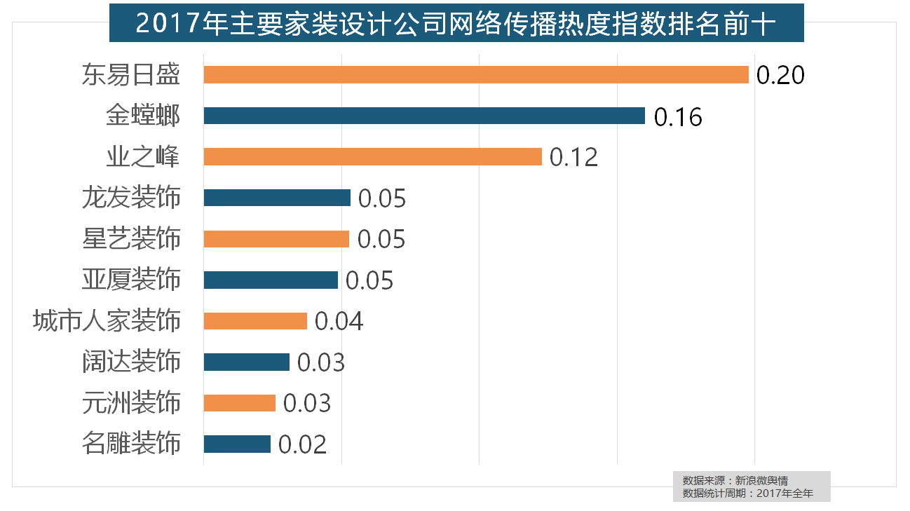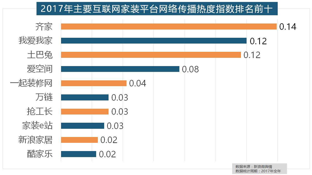 2017年,此外,东易日盛正在过去的一年中收集热度指数最高,万链、抢工长、家拆e坐、新浪家居、酷家乐正在年度互联网家拆平台热度榜上排名第六到第十位。